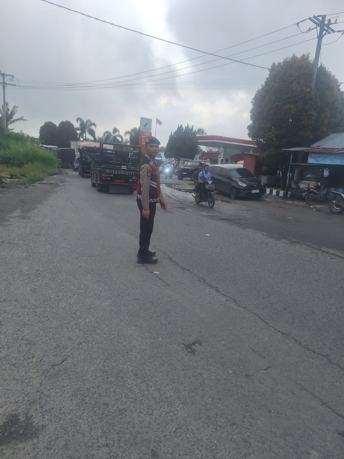 Antrean panjang kendaraan yang hendak mengisi bahan bakar minyak (BBM) di SPBU Raya berpotensi menimbulkan kemacetan parah. Namun berkat tindakan cepat Kepala Satuan Sabhara dan Lalu Lintas (Kasat Samapta) Polres Simalungun yang turun langsung, arus lalu lintas tetap lancar dengan penerapan sistem buka-tutup yang efektif.