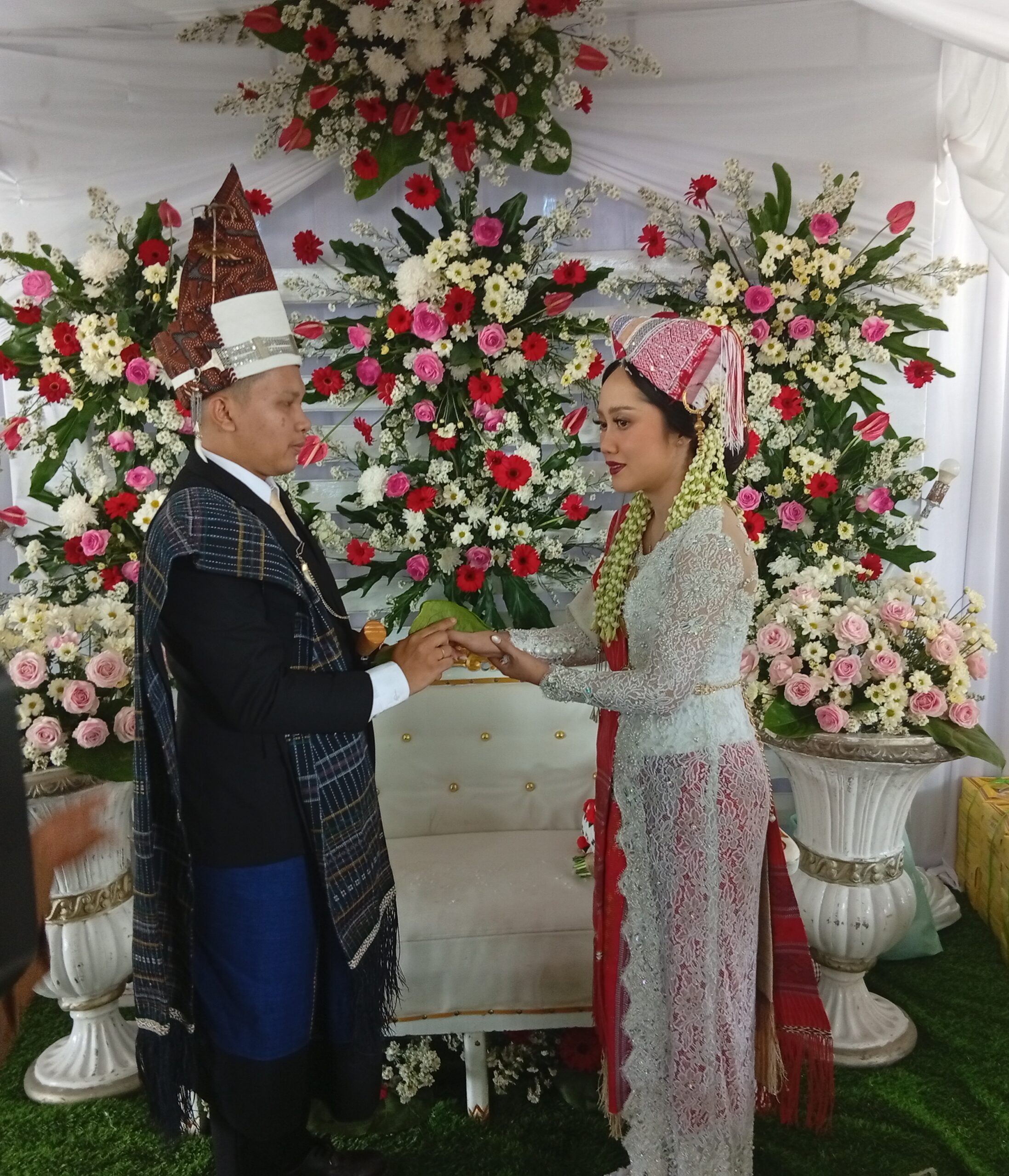 Kebanggaan dan haru terlihat jelas di wajah kedua keluarga saat menyaksikan Michael dan Desy menerima doa peneguhan dari Ephorus GKPS.